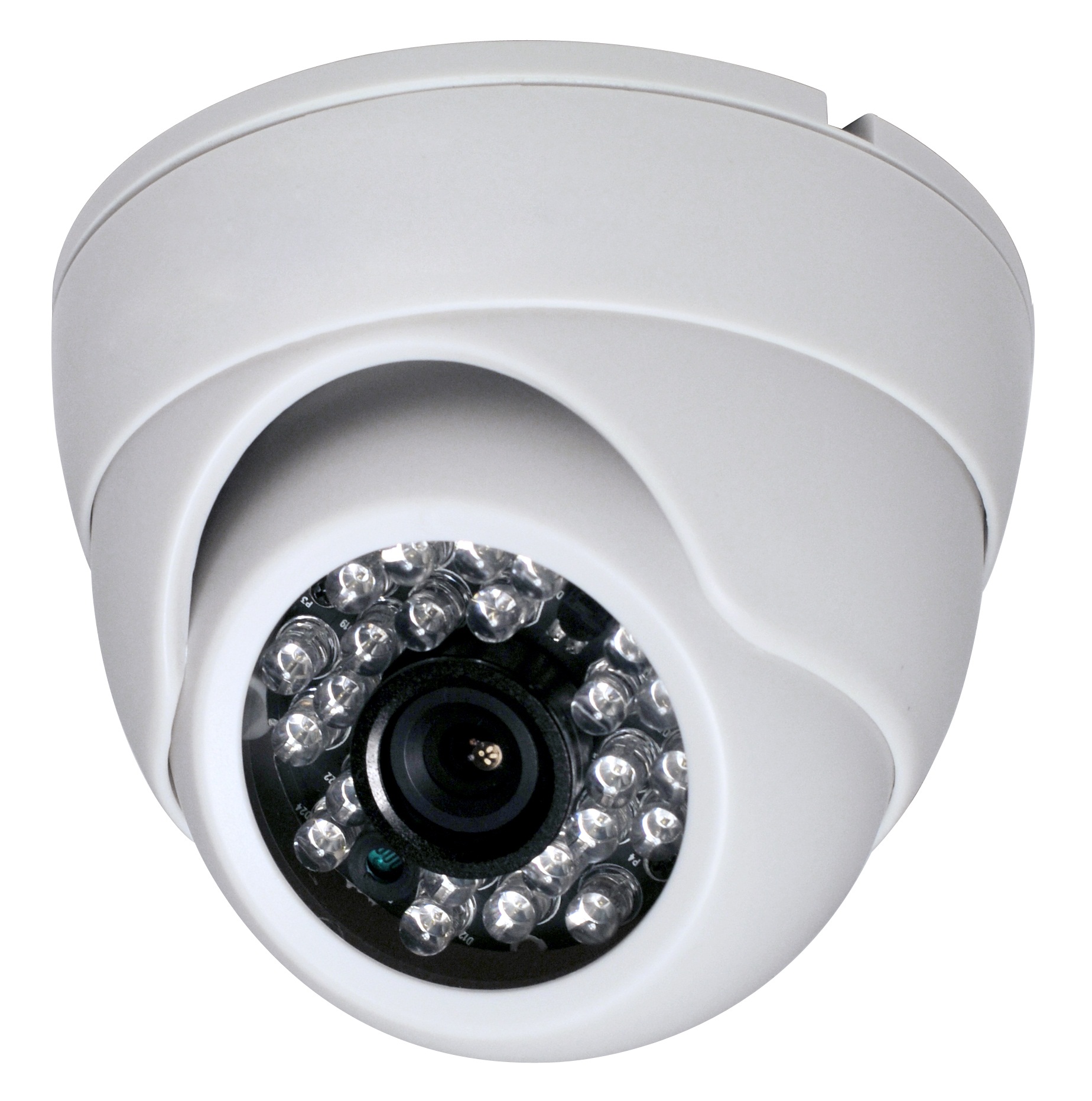 Four mini dome indoor/outdoor infrared cameras with effective night range of 65 feet